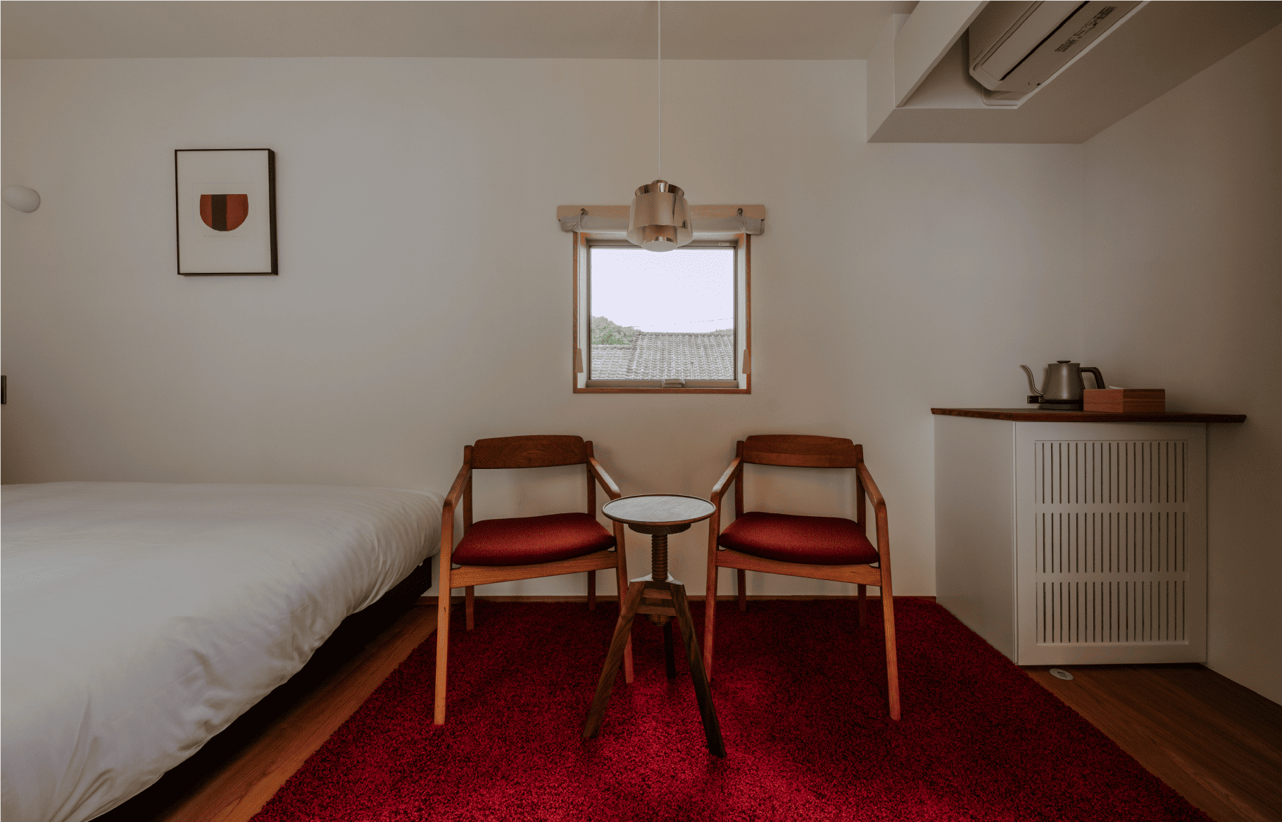 あたたかみのあるお部屋。ミニテーブルとチェアを備え、落ち着いた時間をお過ごしいただけます。